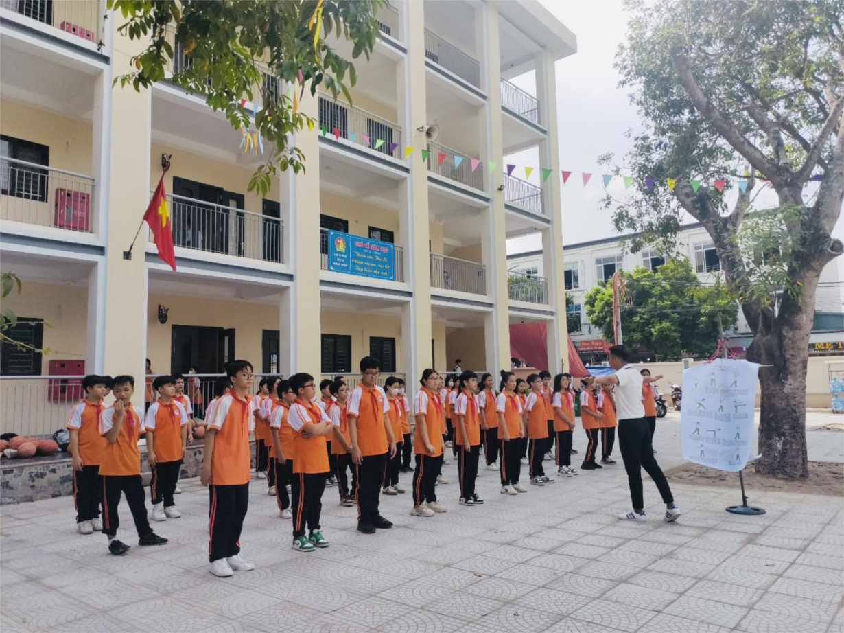 Tiết học được xây dựng với 5 hoạt động theo đúng đặc trưng bộ môn. Trong hoạt động 1: Mở đầu (10 phút), các con được tiếp nhận ban đầu về nội dung bài học, được làm nóng cơ thể, tạo tâm thế sẵn sàng cho giờ học. Với hoạt động 2: Hình thành kiến thức (8 phút), các con được hình thành kiến thức, kĩ năng thực hiện bài thể dục liên hoàn từ nhịp 1 đến nhịp 10 và các con biết cách luyện tập. Tiếp theo, trong hoạt động 3: Luyện tập (17 phút), các con thực hành bài thể dục liên hoàn từ nhịp 1 đến nhịp 10, các con nắm được cách chơi trò chơi và chủ động tham gia trò chơi “Giữ bóng bằng lưng và di chuyển ngang đến đích”. Ở hoạt động 4: Vận dụng (15 phút), các con biết vận dụng được nội dung bài học vào thực tiễn học tập hoặc cuộc sống. Và trong hoạt động cuối cùng: Kết thúc (5 phút) các con được thả lỏng thư giãn, hồi phục sau luyện tập.