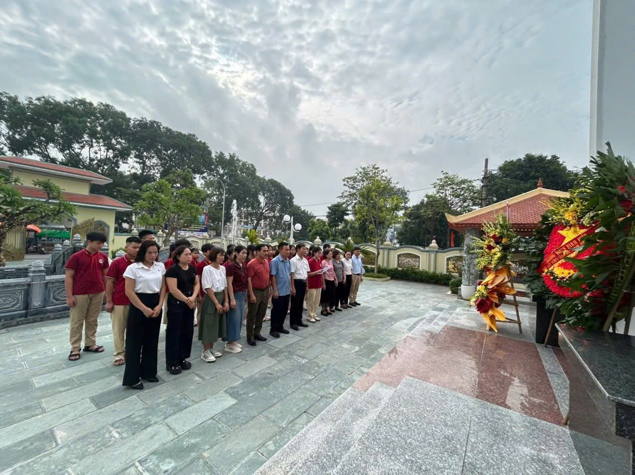 Mở đầu chương trình là lễ dâng hoa, dâng hương tại Đài tưởng niệm liệt sĩ xã nhà, Đại diện Ban giám hiệu nhà trường, các thầy cô giáo, học sinh tiêu biểu cùng Đoàn Thanh niên đã thành kính đặt vòng hoa và thắp nén hương tri ân các anh hùng liệt sĩ – những người đã hy sinh vì độc lập, tự do của dân tộc.