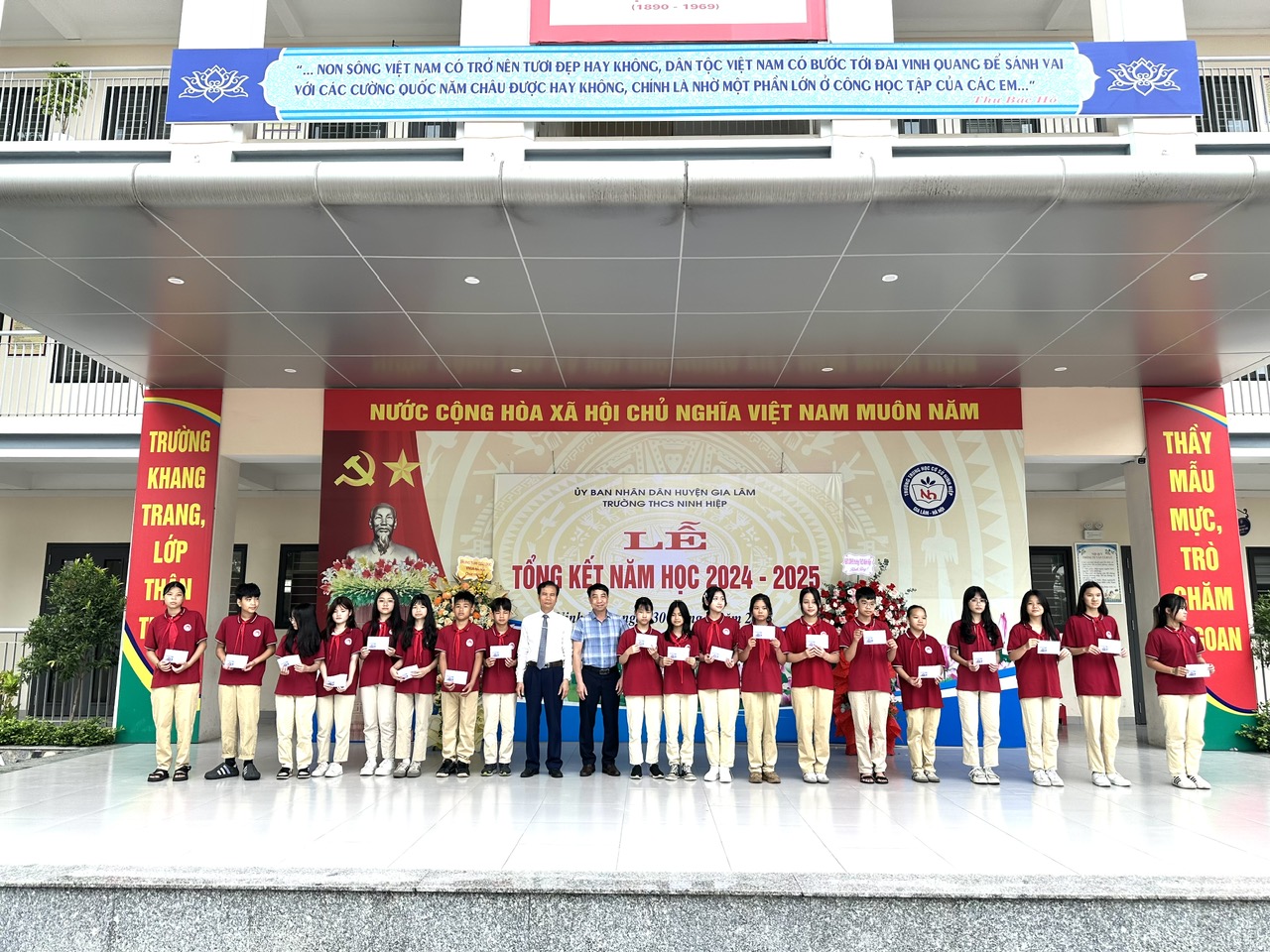 Sáng ngày 30/5/2025, trong không khí đầy cảm xúc của những ngày cuối tháng 5, thầy và trò trường THCS Ninh Hiệp đã long trọng tổ chức Lễ tổng kết năm học 2024–2025. Đây không chỉ là dịp tổng kết lại những kết quả đạt được trong suốt một năm học mà còn là khoảnh khắc đặc biệt để tôn vinh sự nỗ lực, cố gắng của toàn thể học sinh, giáo viên và phụ huynh trong suốt hành trình giáo dục vừa qua.
