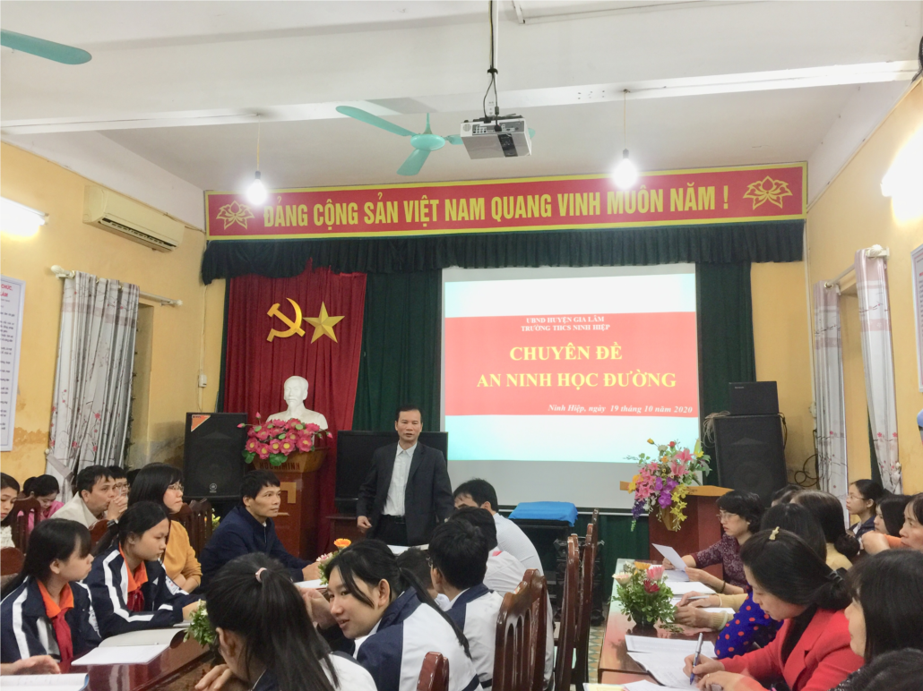 Tình trạng bạo lực học đường hiện nay không chỉ là vấn đề nhức nhối của ngành giáo dục mà còn là vấn đề được cả xã hội đặc biệt quan tâm. Để đảm bảo an ninh trường học, thực hiện sự chỉ đạo của phòng Giáo dục và Đào tạo huyện Gia Lâm, Công an huyện Gia Lâm; sáng 19 tháng 10 năm 2020, trường THCS Ninh Hiệp phối hợp với Công an xã Ninh Hiệp phối hợp tổ chức chuyên đề An ninh học đường.