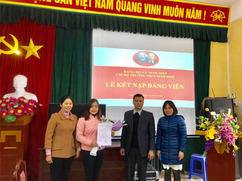 Sáng thứ 5, ngày 03/12/2020, Chi bộ trường THCS Ninh Hiệp long trọng tổ chức Lễ kết nạp Đảng viên mới cho quần chúng ưu tú - cô giáo Nguyễn Thị Duyên, giáo viên môn Hóa học.