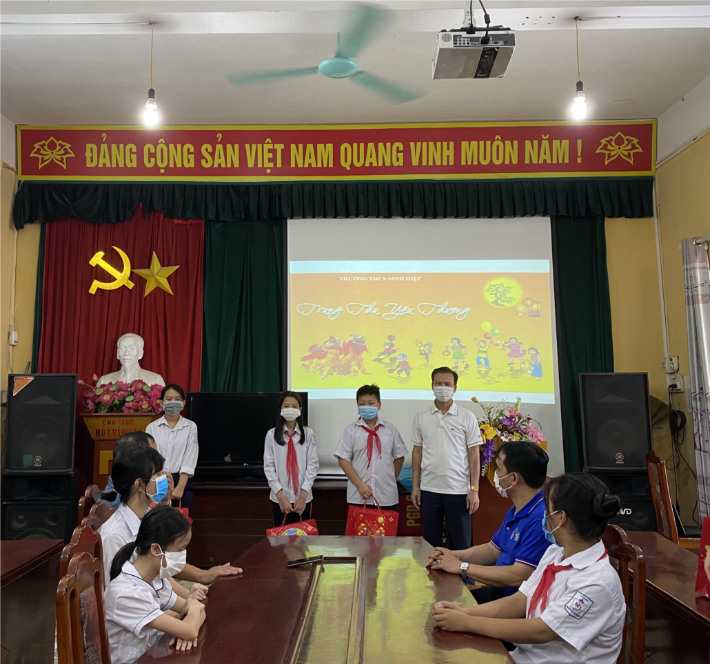 Tết Trung thu năm nay đang đến gần, song do ảnh hưởng của dịch bệnh Covid-19 nên không có các hoạt động tổ chức vui chơi như mọi năm. Để động viên tinh thần các em học sinh, sáng ngày 21/09/2021, trường THCS Ninh Hiệp phối hợp cùng các bác trong Ban Đại diện CMHS đã tổ chức trao 11 suất quà cho các em học sinh thuộc diện gia đình chính sách, gia đình có hoàn cảnh khó khăn.